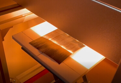 固化PP料無塵裁切可利用聚焦加熱器對半固化PP材料進行加熱,結(jié)合圓刀切割技術(shù)實現(xiàn)無塵裁切。其主要原理是將紅外加熱技術(shù)與傳統(tǒng)的裁切方法相結(jié)合,利用紅外聚焦高溫加熱,穿透力強,加熱速度快,對切割處的半固化片先加熱再裁切,從而減少切割過程中產(chǎn)生的粉塵,解決一直以來困擾業(yè)界的裁切半固化片粉塵及毛邊問題,提高生產(chǎn)效率的同時保證了操作人員的健康。